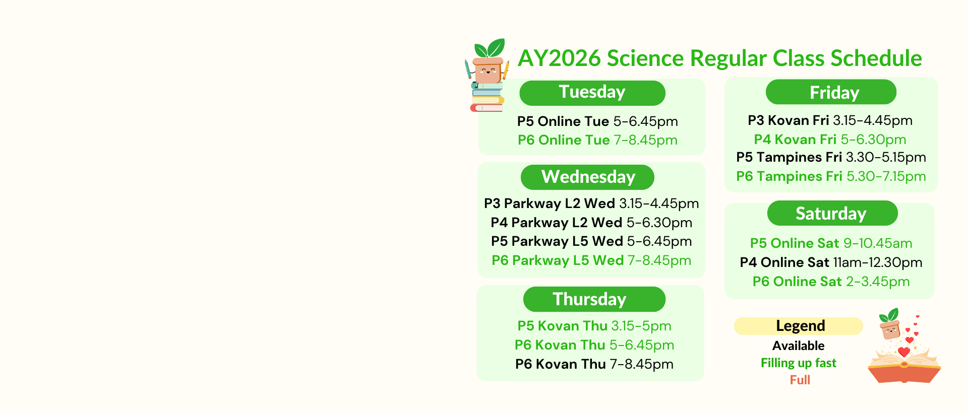 Germinate’s Primary Science Programme builds deep into your child’s science foundation. Our effectively- designed curriculum and unique teaching methodology is crafted from more than 20 years of MOE and PSLE Science coaching expertise by our founder, experienced ex- PSLE marker, author & coach Jayce Or (NIE PGDE, Melbourne Graduate School of Education).