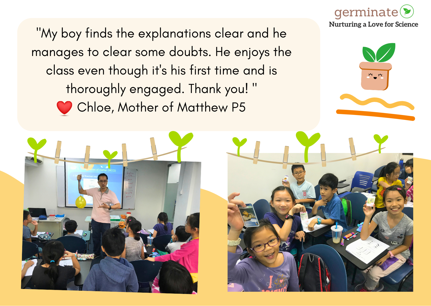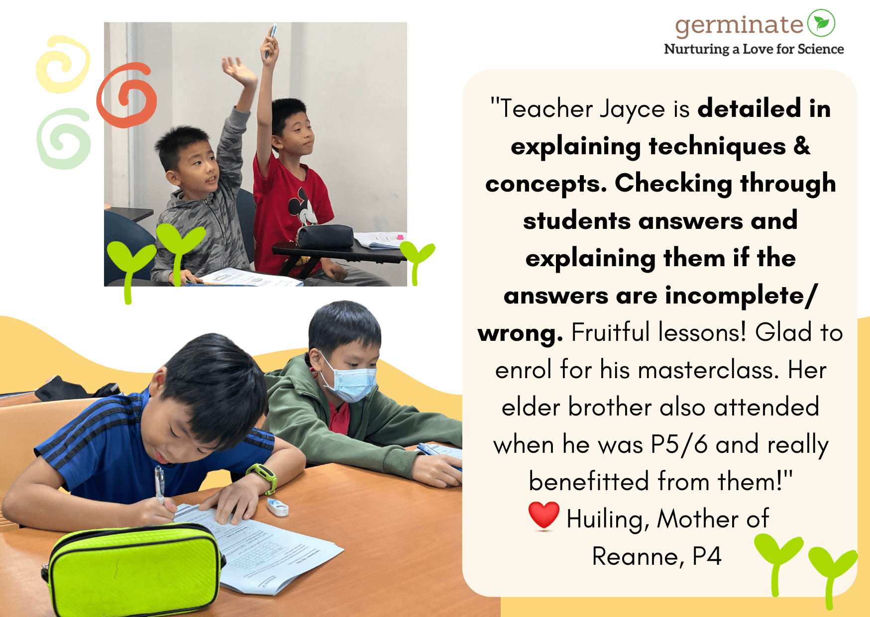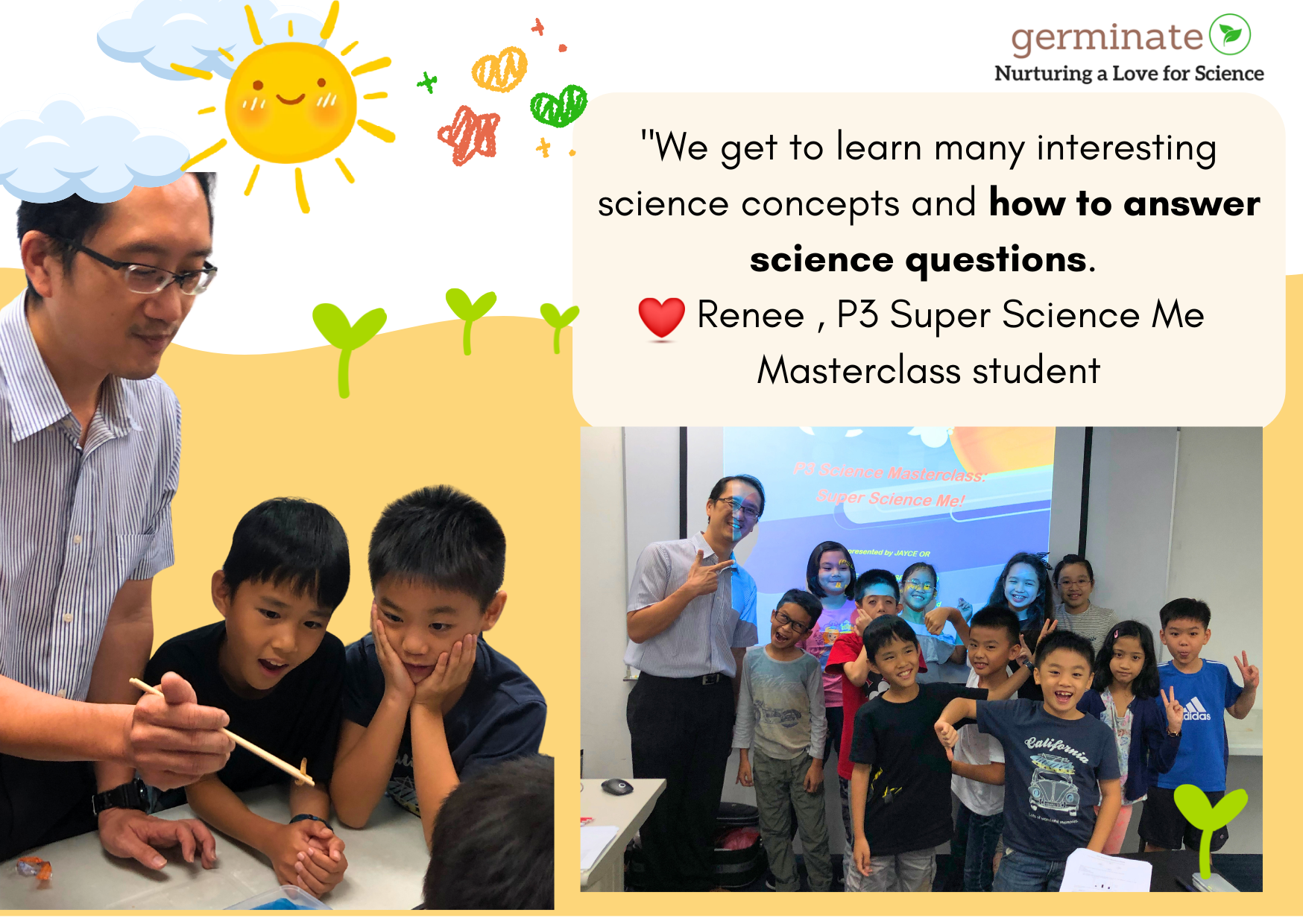 The Super Science Me! Concept Mastery Masterclass is a premier Science Concept Consolidation class for Primary 3 students. Supercharge your mastery of key concepts & answering strategies with the Germinate Advantage!
