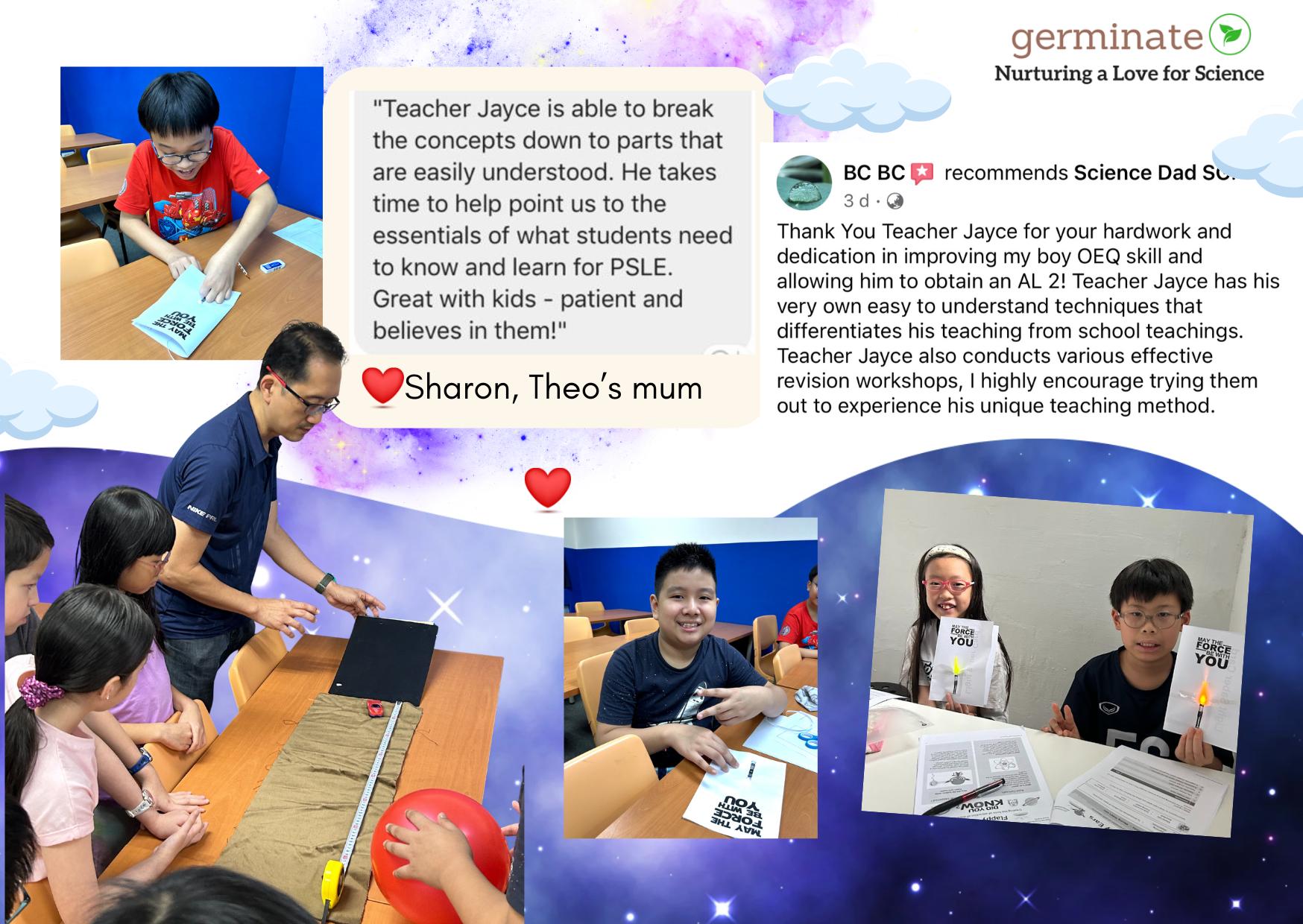 - Founder & Principal of Germinate Learning Pte Ltd, PSLE Science Strategist, Author of P5/6 Marshall Cavendish Science Test X-Tra, former experienced PSLE Science marker with more than 20 years of Science Coaching in both MOE & private industry.