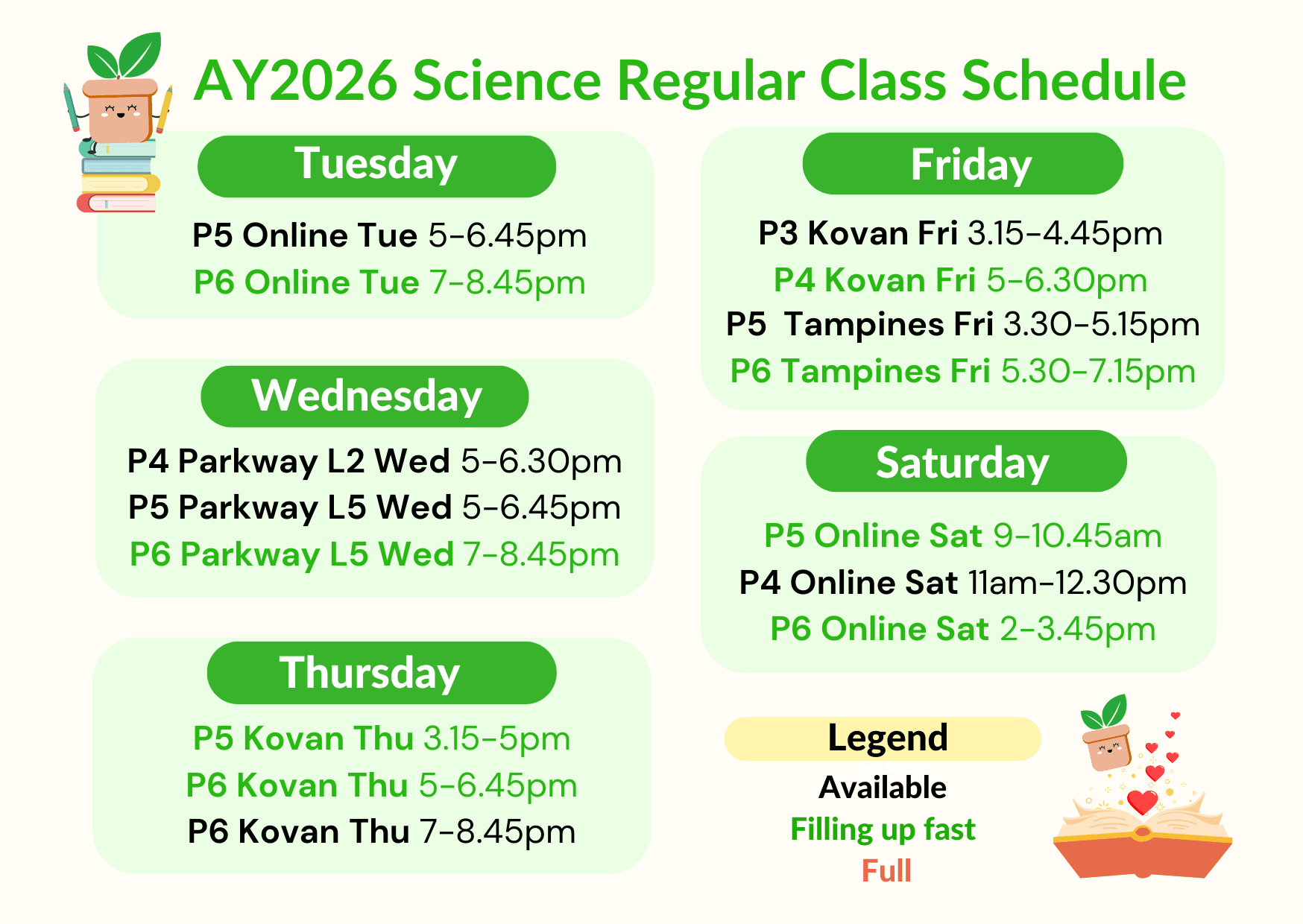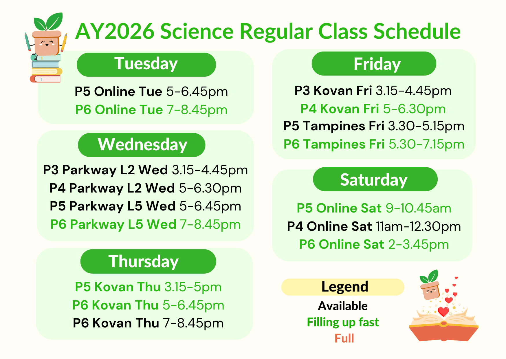 - Our classes nurture an environment for children to be curious and appreciate Science way beyond a mere academic subject, while preparing students for the demands of the MOE Science Syllabus.